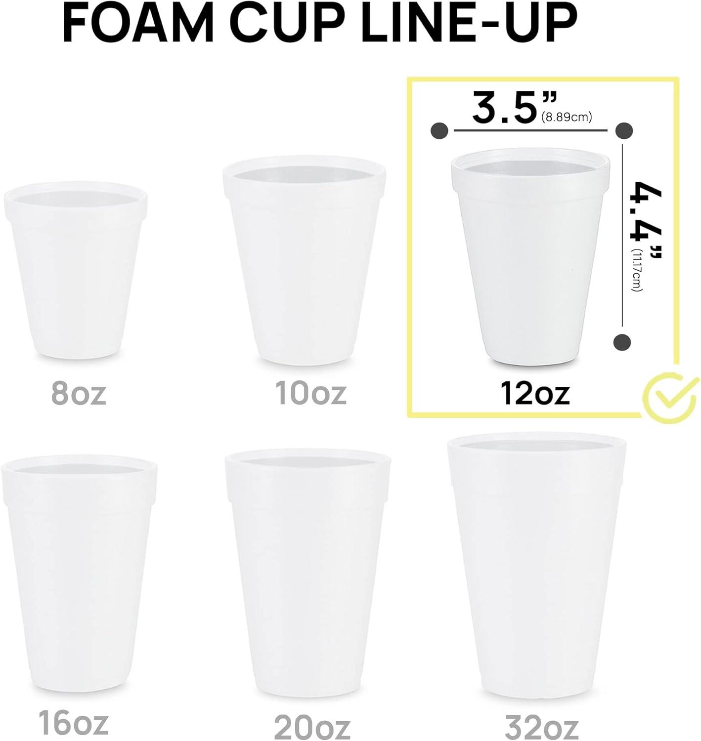 12-Ounce Foam Cups – The 12-Ounce cups are the perfect size for everyday use. Try these cups with both hot and cold drinks.