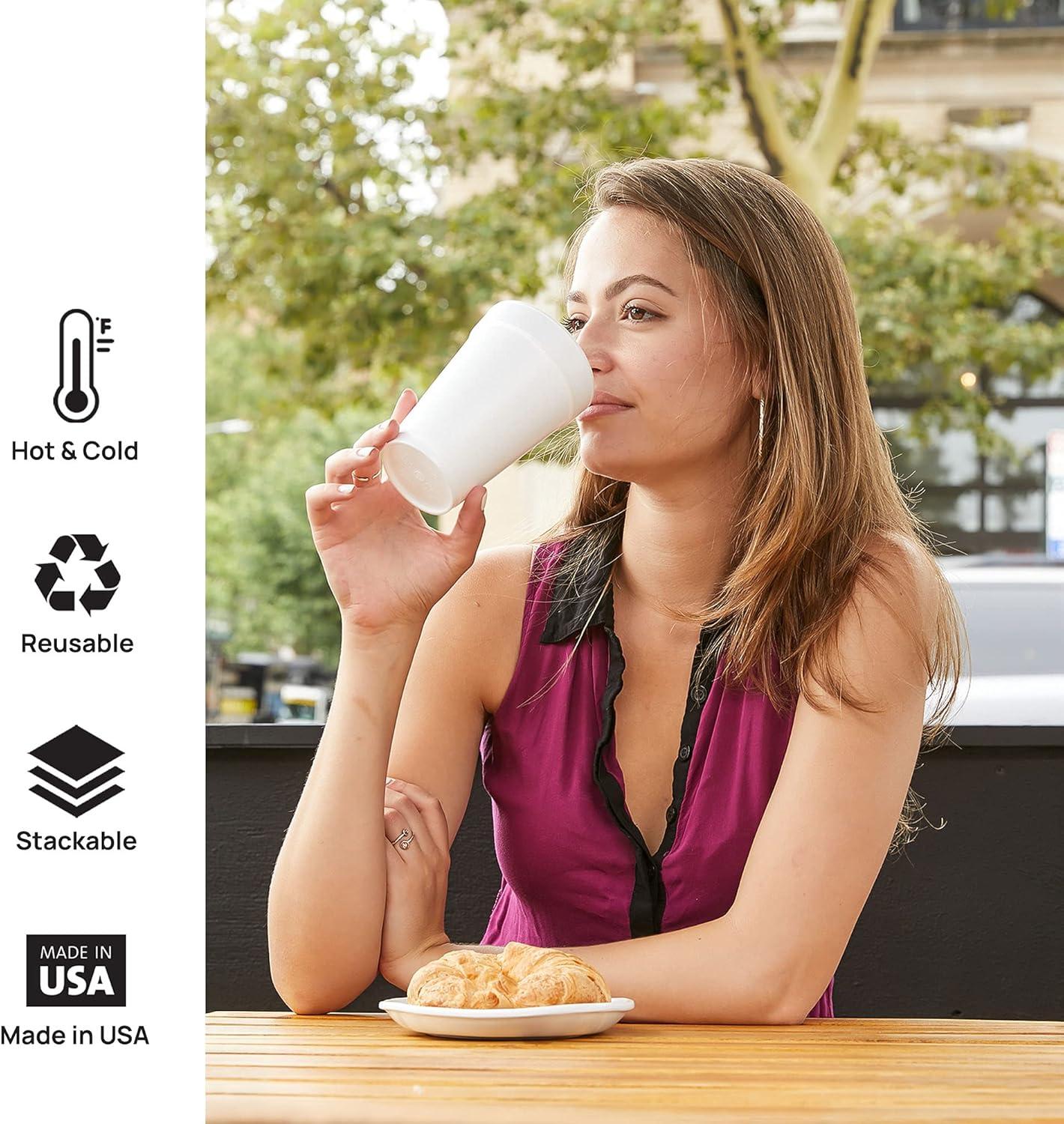 The cup's classic white color will fit in any setting and can be branded and accessorized.