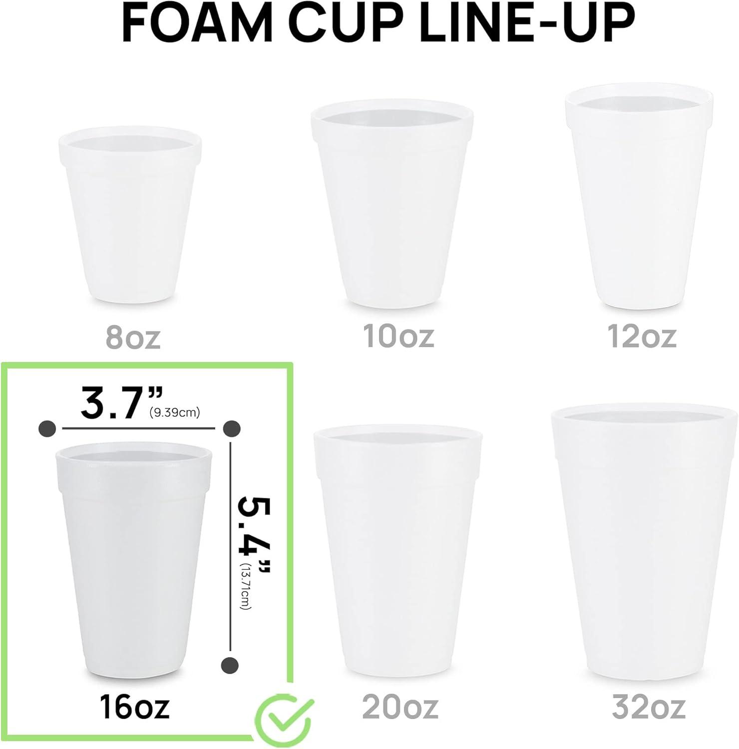 16-Ounce Foam Cups – The 16-Ounce cups are the perfect size for everyday use. Try these cups with both hot and cold drinks.