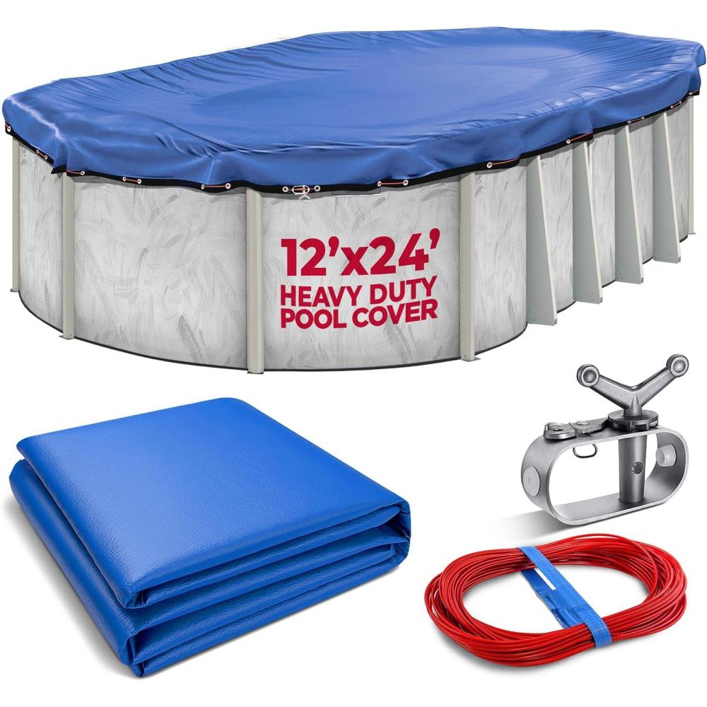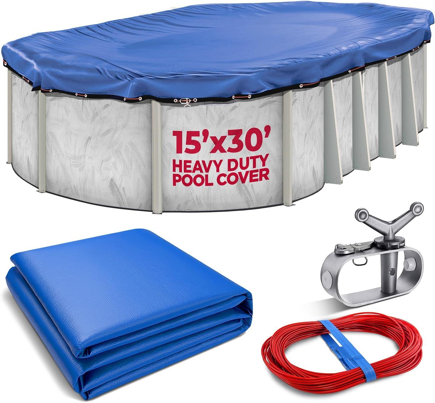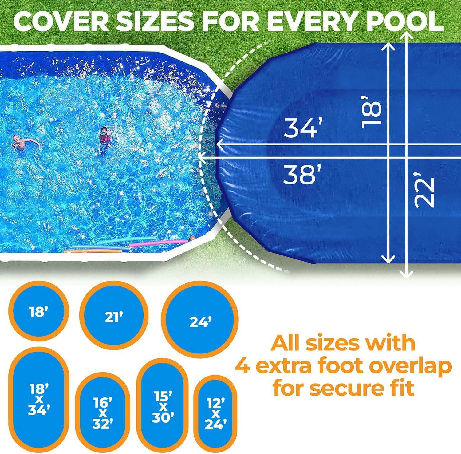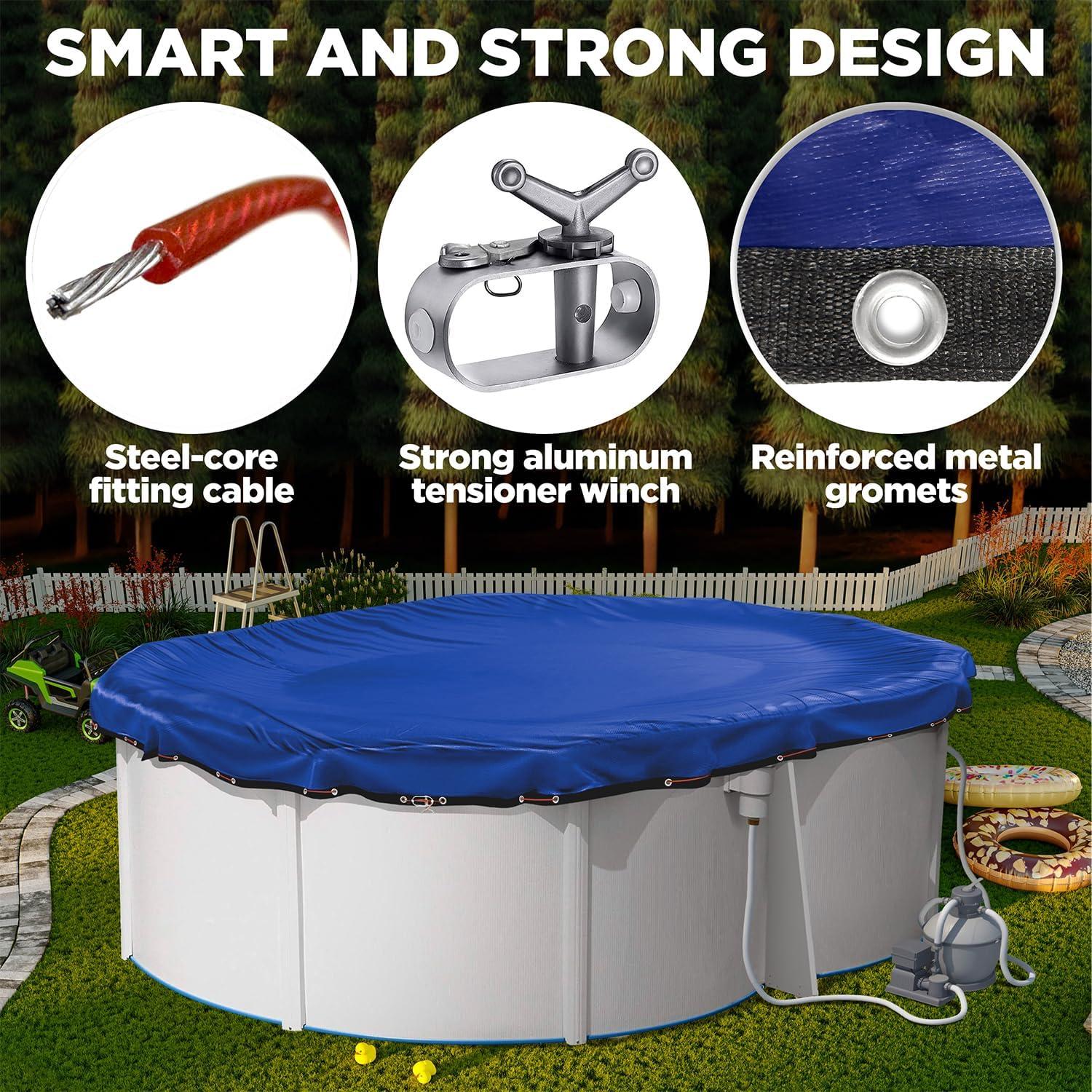 18 Ft Round Premium Heavy-Duty Winter Pool Cover - Royal Blue, Extra Thick and Durable, Tear-Proof, UV-Resistant, Reinforced Edges, Easy Install, All-Season Protection for Above Ground Pools(Oval)