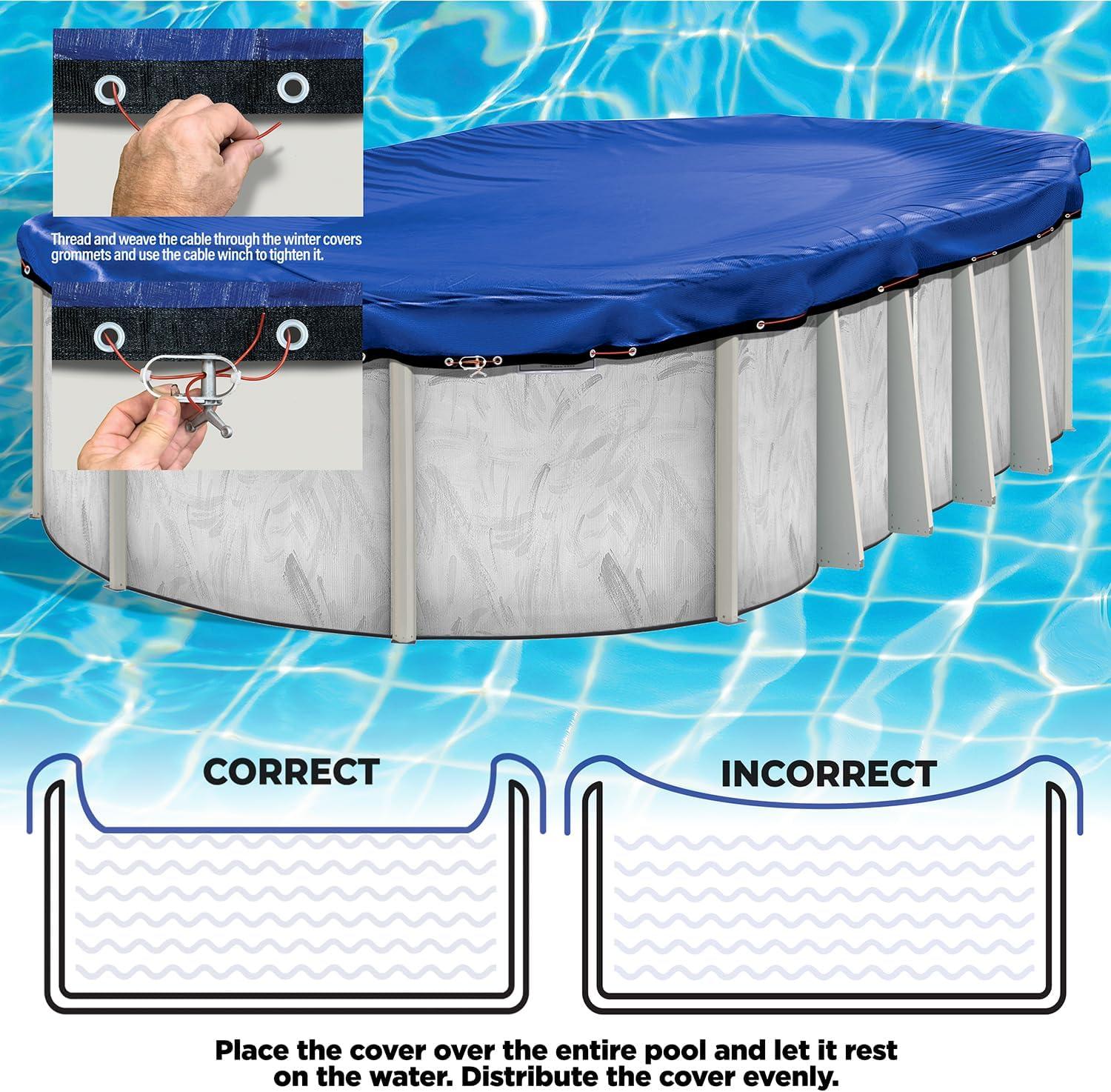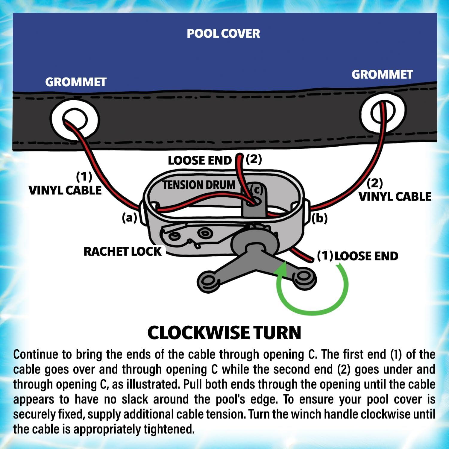 Easy Installation & Removal: Designed for effortless installation and removal. Equipped with a steel-core cable that seamlessly fits into reinforced grommets, these covers ensure a snug and secure fit, leaving no room for debris to enter. The included specially molded winch allows for smooth operation, making it simple to cover your pool before winter and uncover it when the weather warms up