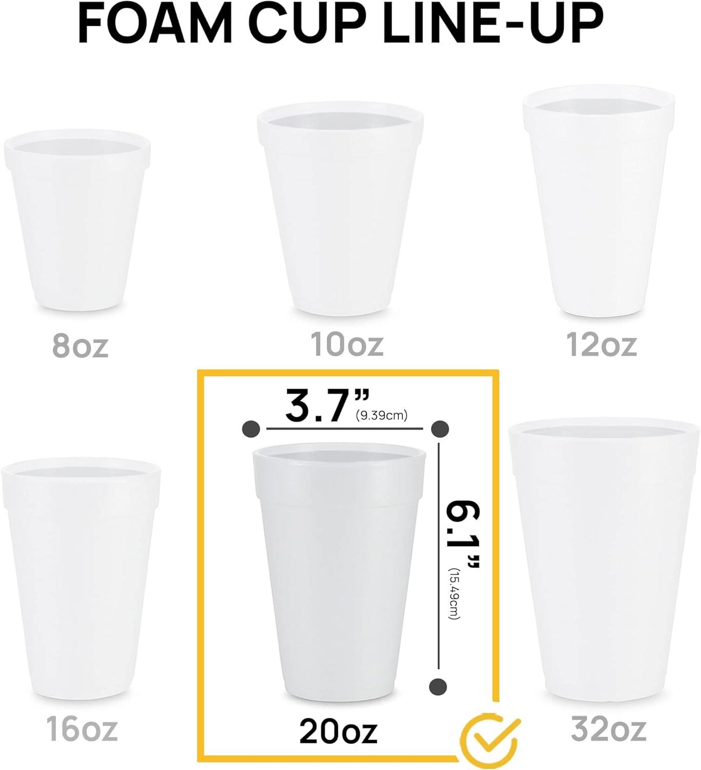 20-Ounce Foam Cups – The 20-Ounce cups are the perfect size for everyday use. Try these cups with both hot and cold drinks.