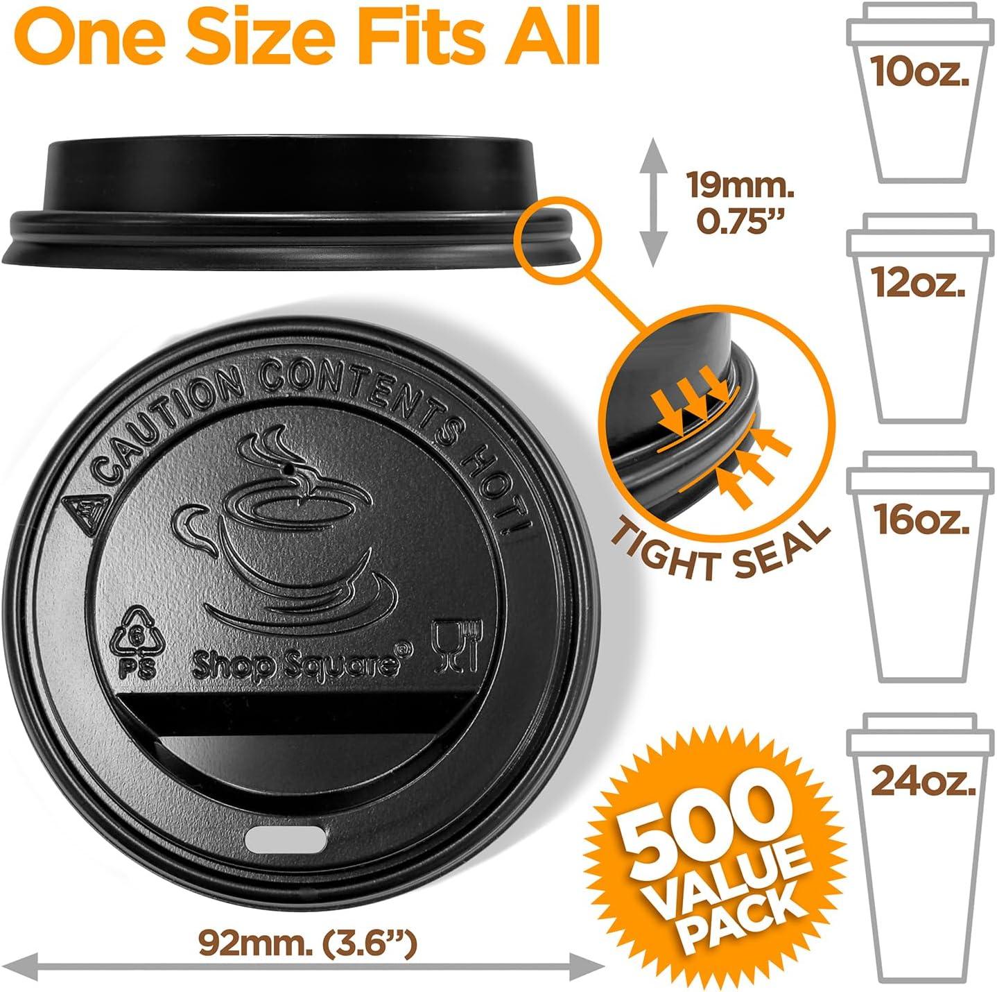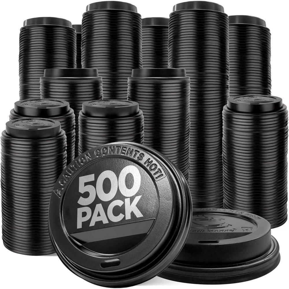 (500-Pack) Coffee Cup Lids - Disposable Coffee Lids for 10, 12, 16, 20, & 24 oz Paper Cups, 8 oz Squat Cups, Dome for To-Go Beverages, Expresso, Tea, Hot Chocolate - Black(500 Count)