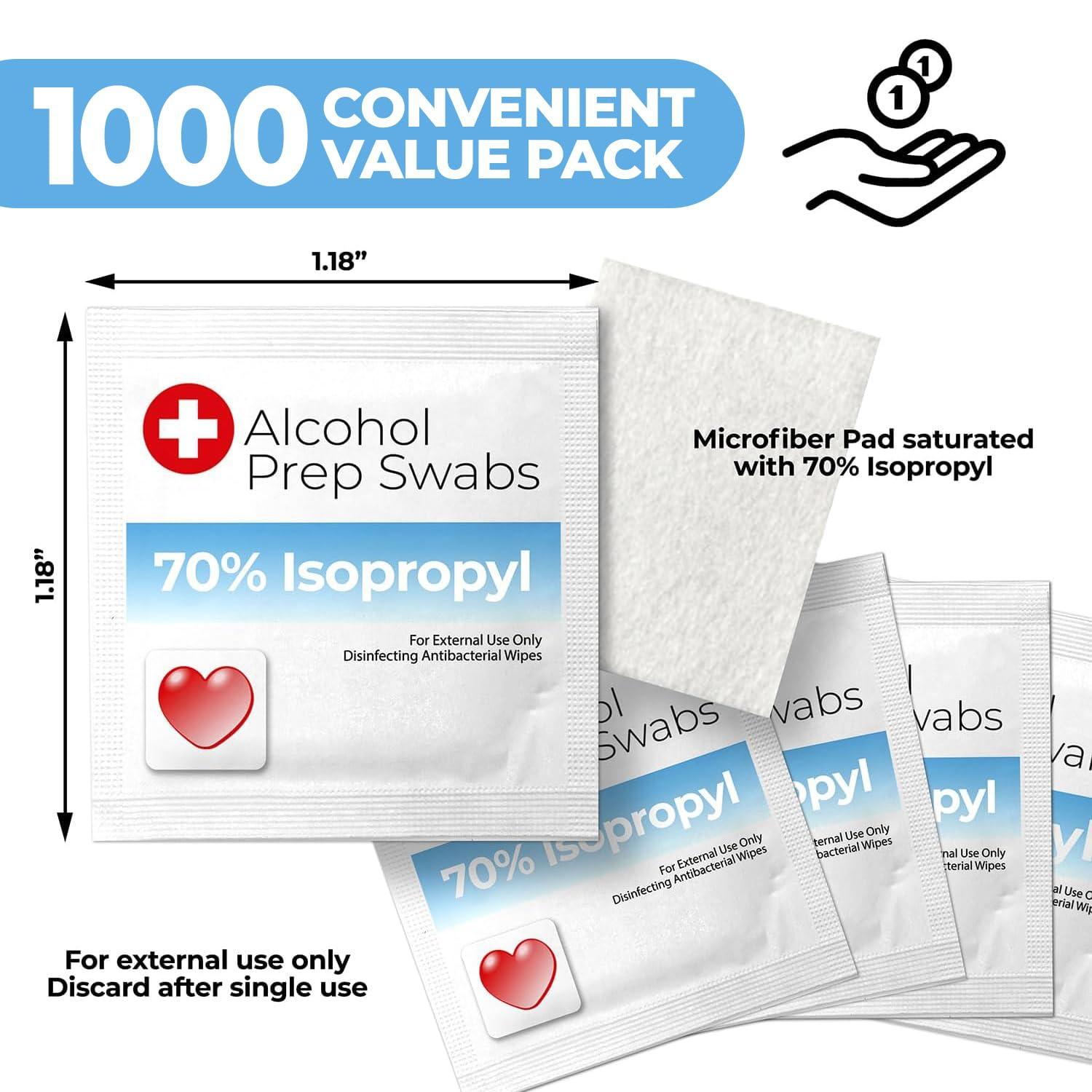 Alcohol Wipes individually Wrapped – 300 Pack Isopropyl Alcohol Wipes, Alcohol Prep Pads, Great for Home, Medical and First Aid Kits, Individually Wrapped Swabs(1000 Count)