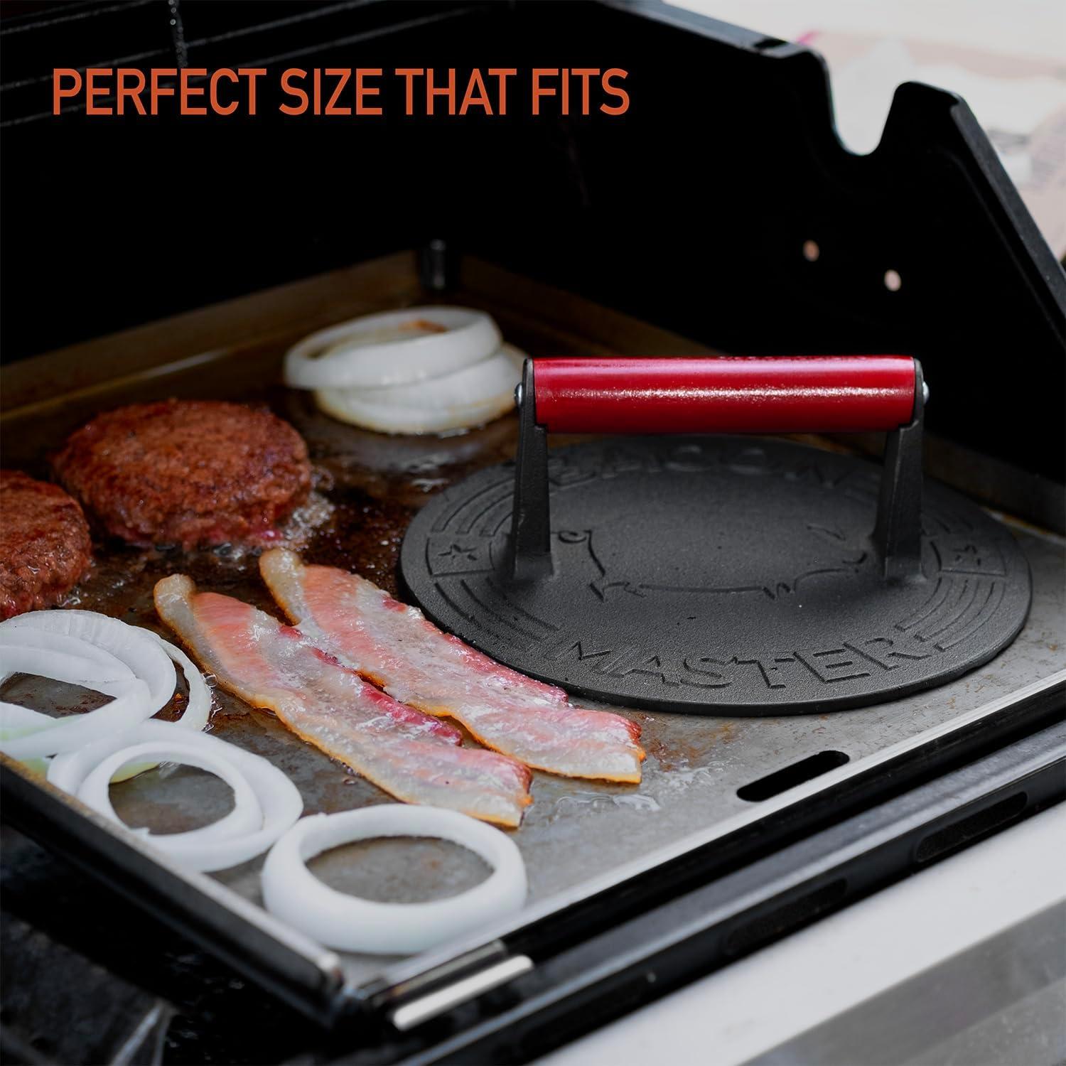 Versatile Cooking Weight for Flawless Cooking: Handle high temperatures and achieve perfect results every time with our heavy-duty cast iron grill and burger press. Flatten burgers, press paninis, grill vegetables, and more while enjoying those sought-after grill marks that add depth of flavor and a professional touch to your dishes.