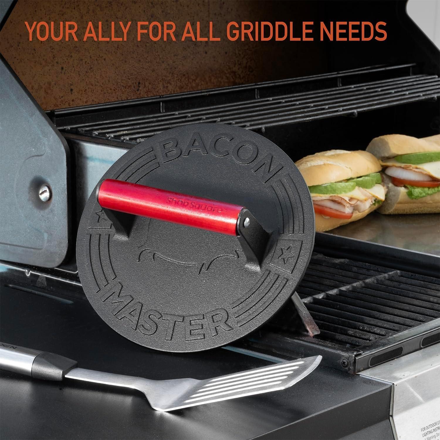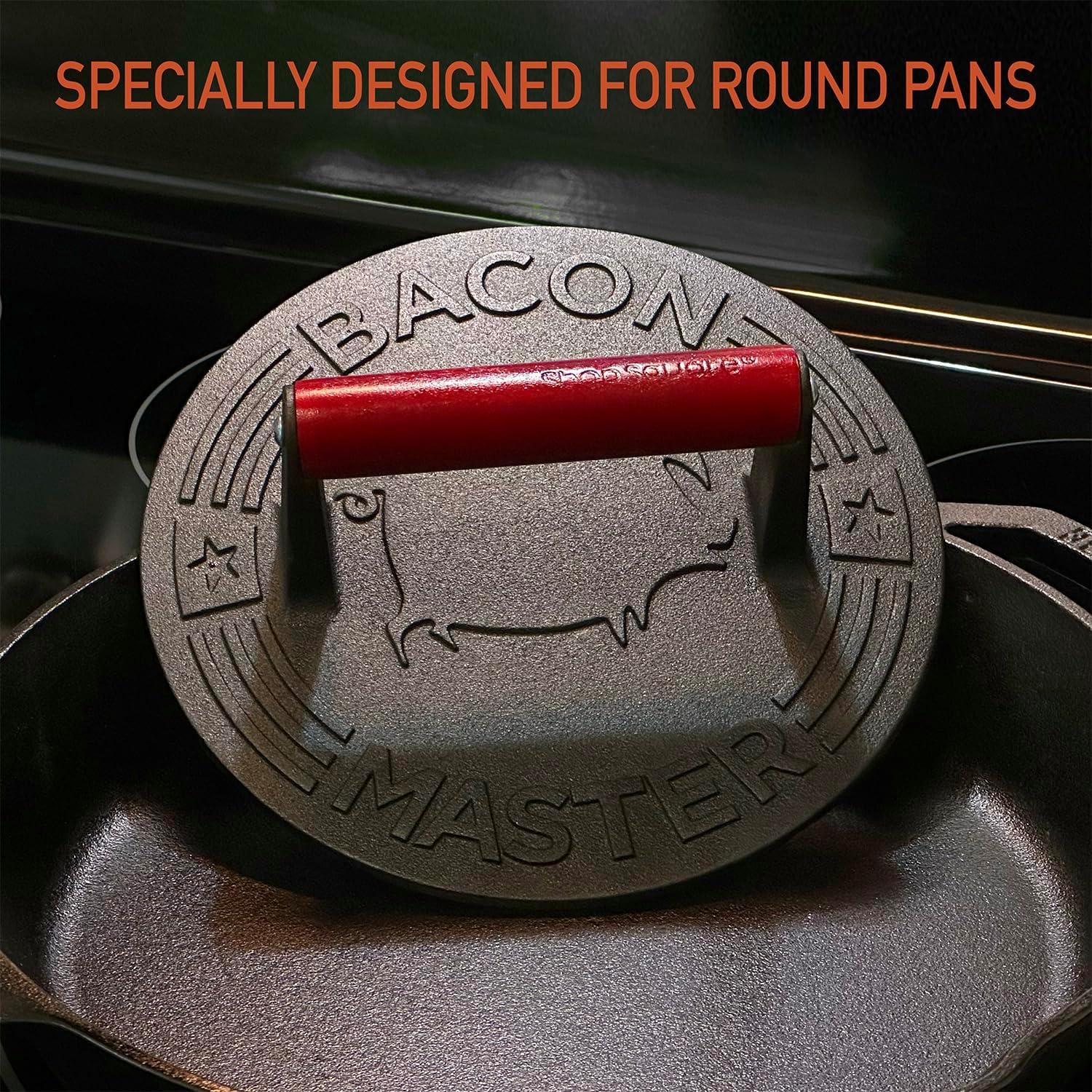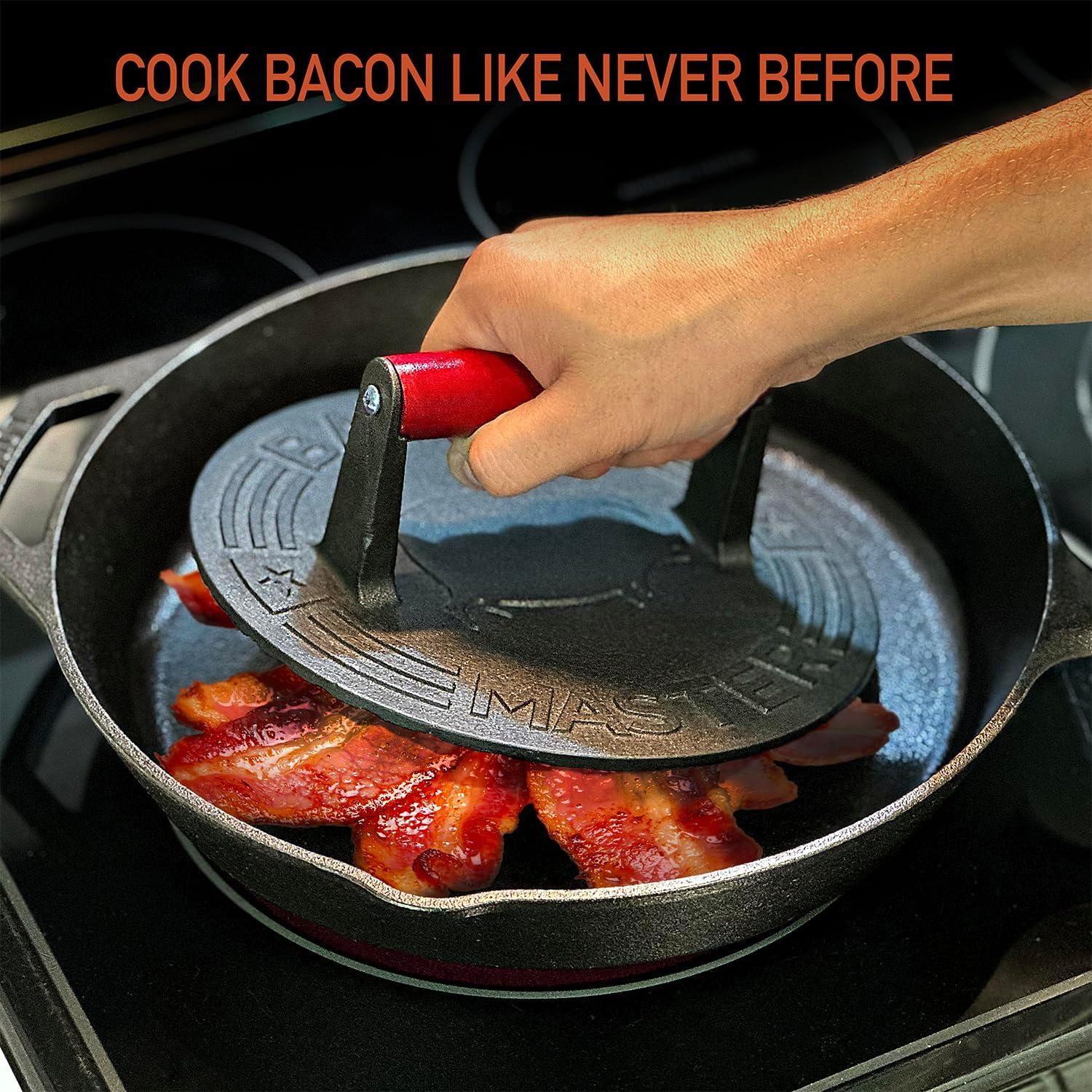 The Bacon Master: Achieve perfectly crispy and evenly cooked bacon every time with our cast iron bacon press, the perfect tool for any bacon lover! Our 3 lb press helps to flatten bacon strips, ensuring quick and even cooking, creating a crispy texture that is not greasy or oily.
