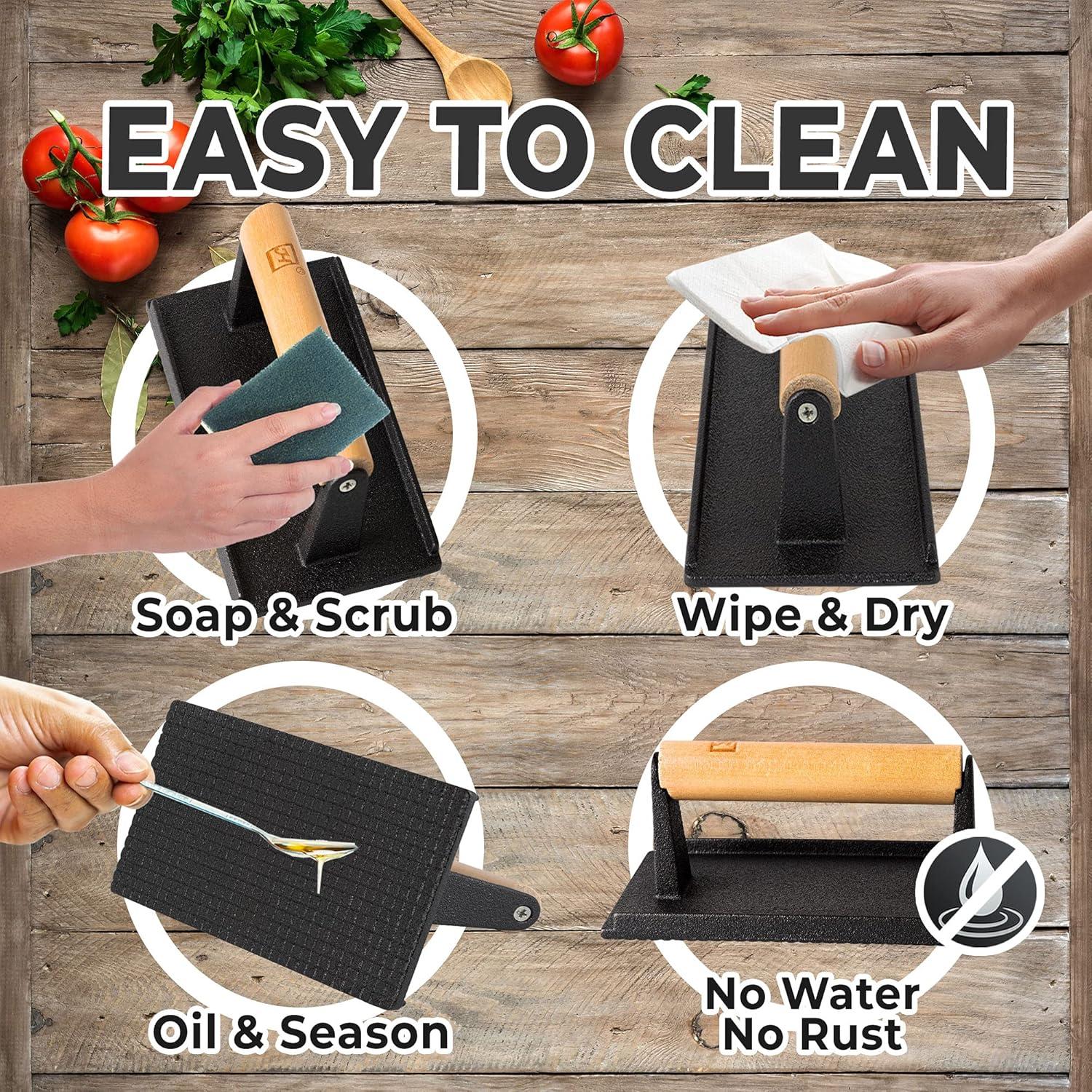 A Breeze To Maintain – Cleaning these flat grill presses is easy. All you have to do is scrub them with soap and water to remove grease and food residue. Wipe it dry with a clean cloth and you’re done!