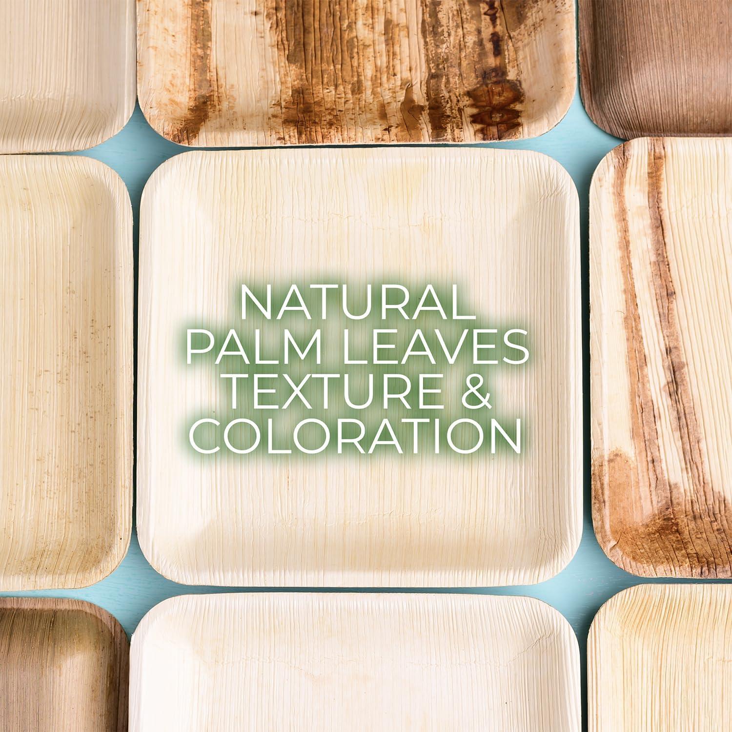 STRONG & RELIABLE DESIGN – These palm leaf plates are sturdy enough to handle heavy meals, hot dishes, and saucy foods without bending or leaking.
