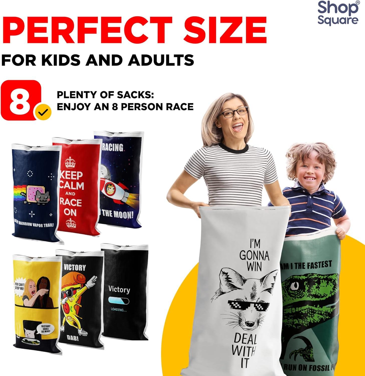 Cool Distinct Designs – Each of these jumping bags has a funny, unique style. Featuring fun, meme graphics, it will be hard to pick a favorite. These potato sacks are sure to turn heads during any round of backyard games. Designs include nyan cat, dabbing pizza, and more. Remember, there are 8 different designs, but only one race winner!