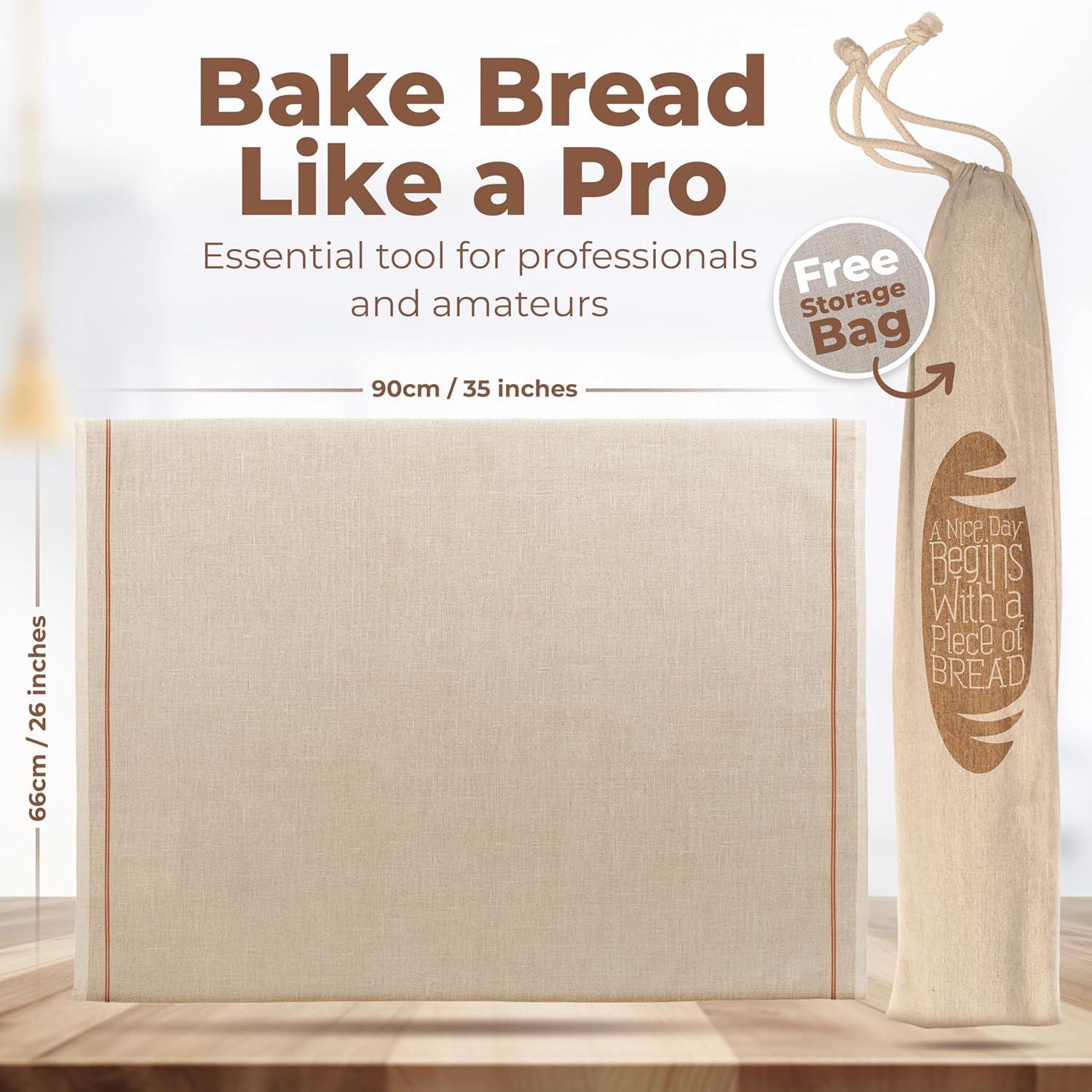 Professional Bakers Couche Extra Large 35″ x 26″ Premium Proofing Cloth 100% Natural Flax Linen – with Bonus Storage Bag