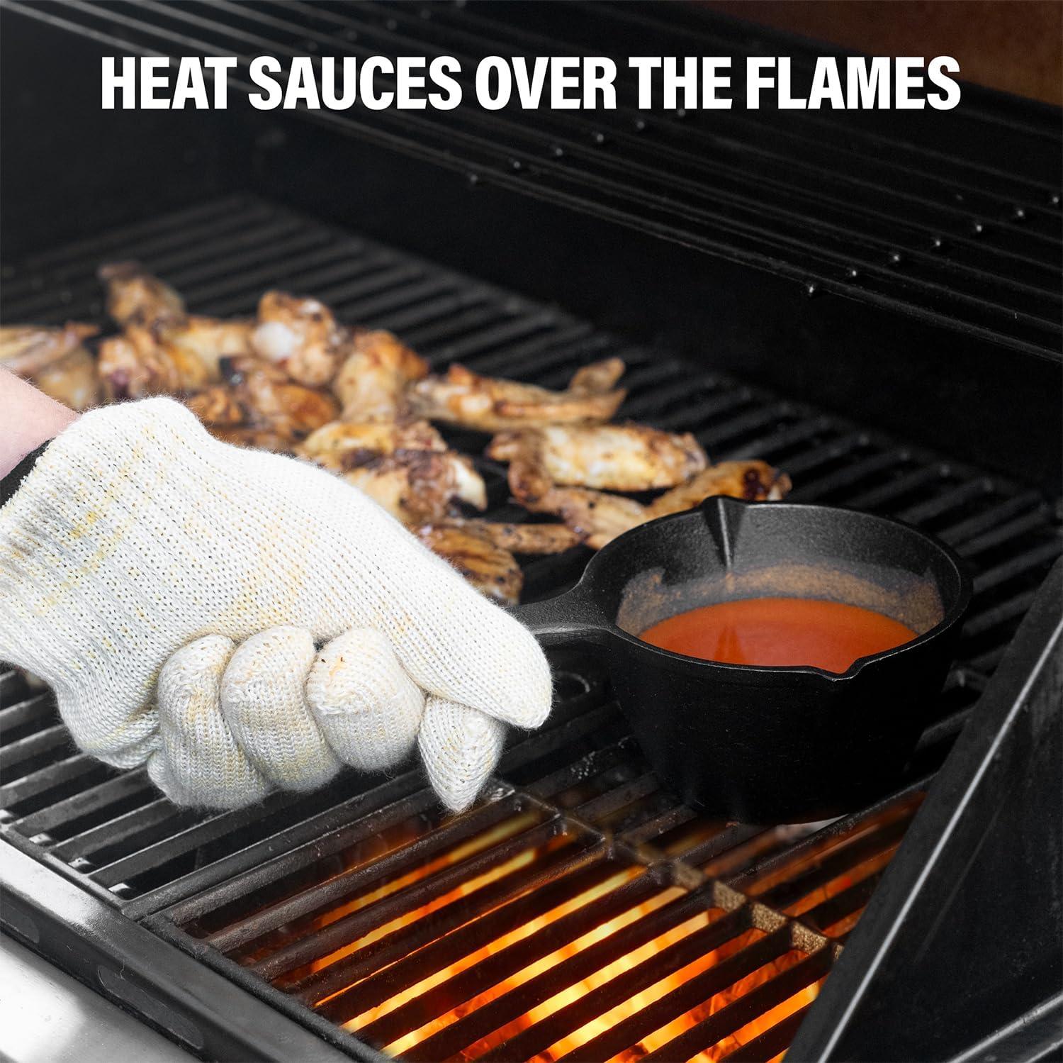 Durable High-Quality Materials: Our cast iron basting pot is made from high-quality, durable materials that allow for maximum heat retention, ensuring that your sauces and marinades stay at the perfect temperature as you baste your food. Plus, our long BBQ basting brush is designed to reach all parts of your dish, making it easy to evenly distribute flavor and is heat-resistant up to 450-degrees fahrenheit.