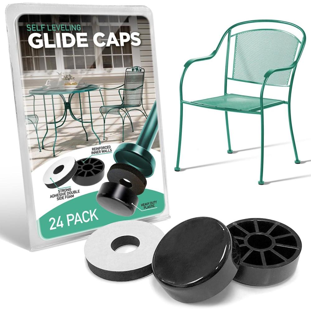 Floor Protection: Shield your floors from scratches and damage caused by patio furniture with our non-marking wrought iron leg caps, suitable for various surfaces including decks, stone, and concrete.